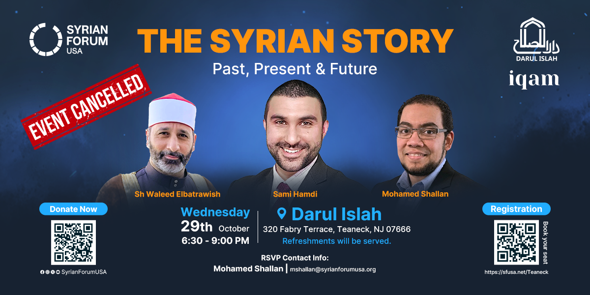 Our speakers—Sami Hamdi, Sh. Waleed Elbatrawish, and Mohamed Shallan—will share perspectives on Syria’s history, its current struggles, and the possibilities that lie ahead.