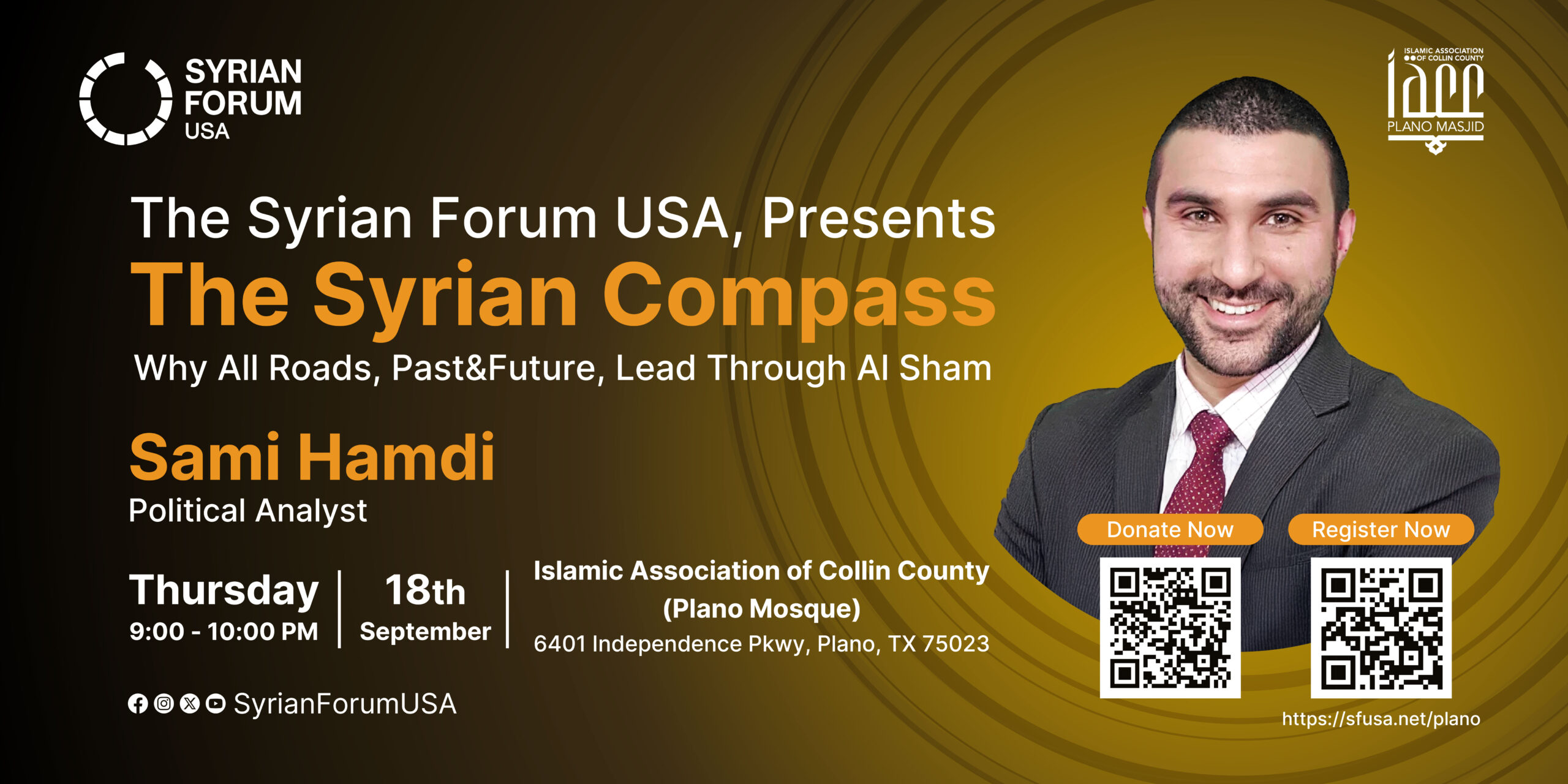 This special event will feature renowned political analyst Sami Hamdi, who will explore Syria’s deep historical importance and the pivotal choices shaping its future.