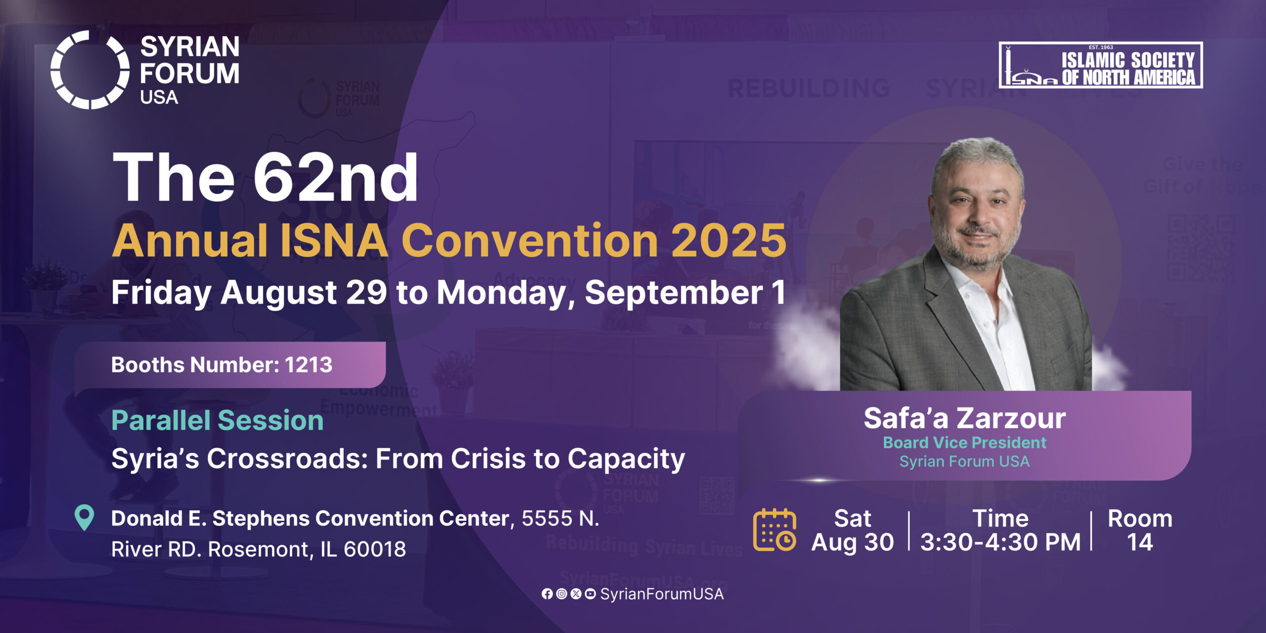 Join us at the Islamic Society of North America (ISNA) for its landmark 62nd Annual Convention—a vibrant gathering of faith, community, and purpose—from August 29 to September 1, 2025, at the Donald E. Stephens Convention Center in Rosemont, IL. We’re honored to participate as an Amethyst Sponsor and can’t wait to meet you there!