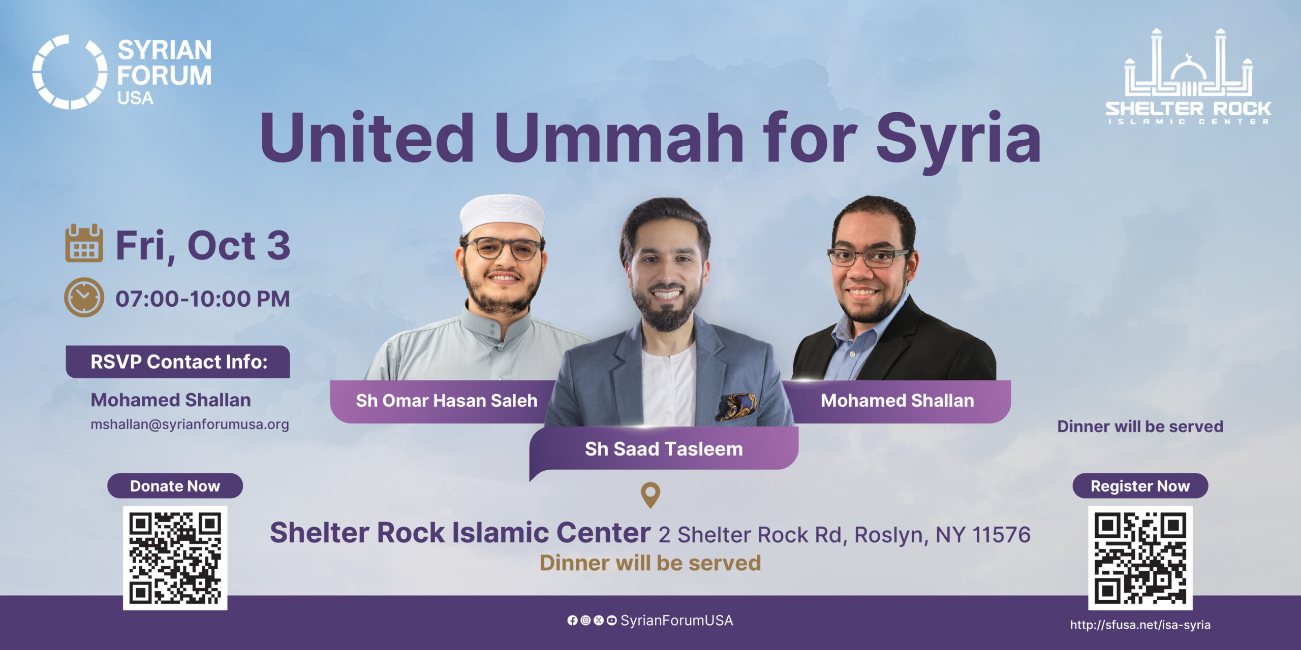 As Syria faces ongoing humanitarian crises, the call for unity has never been stronger. The Shelter Rock Islamic Center invites you to a transformative evening of education, compassion, and collective action, featuring renowned scholars Sh. Saad Tasleem (Islamic Teacher & Public Speaker).